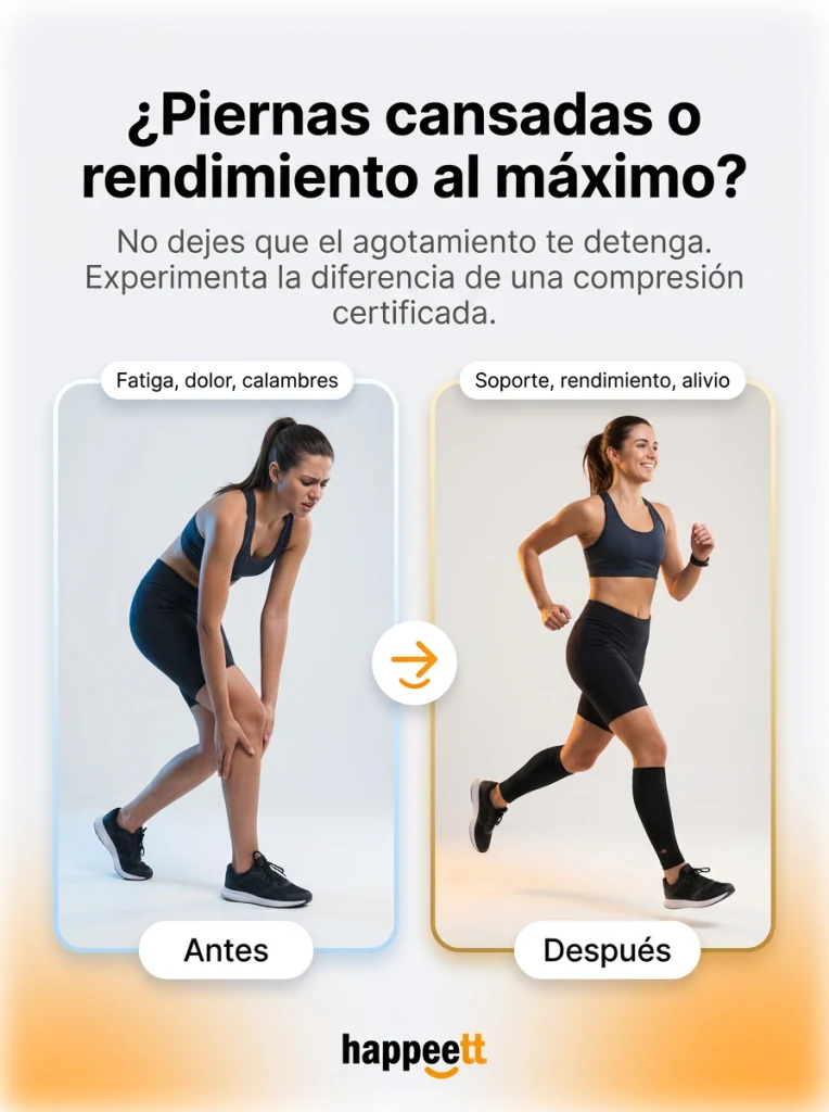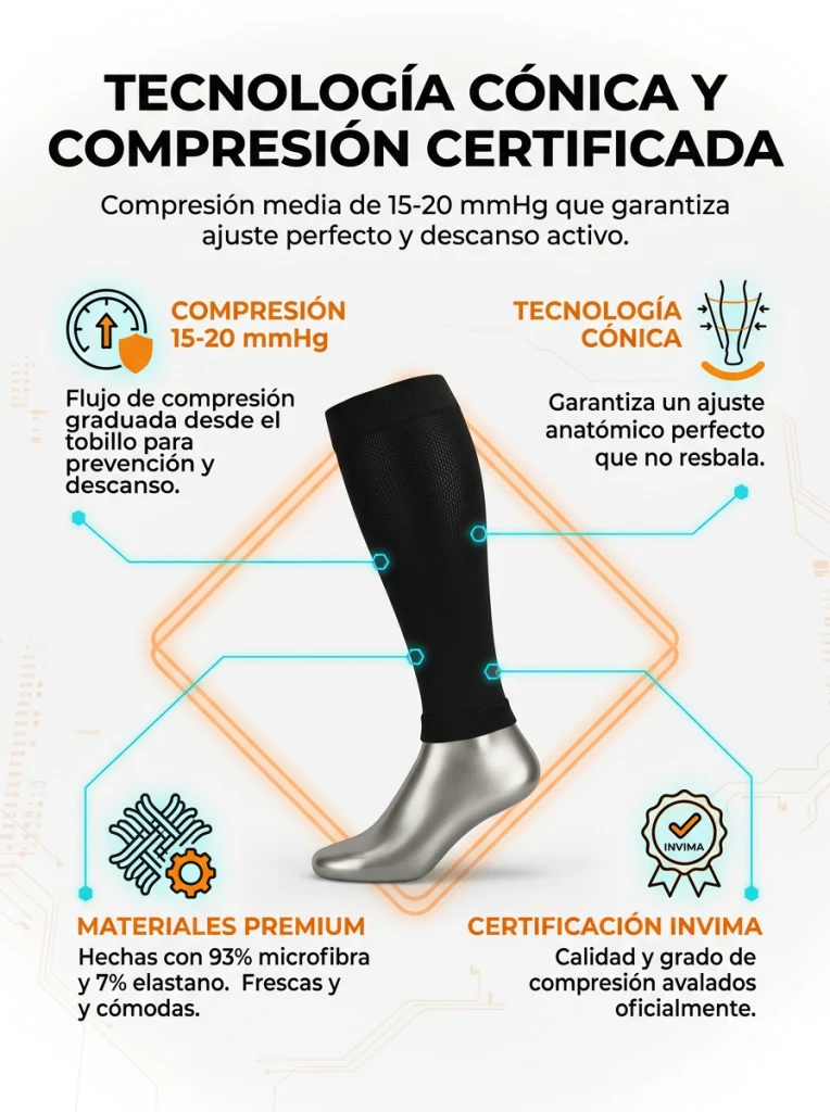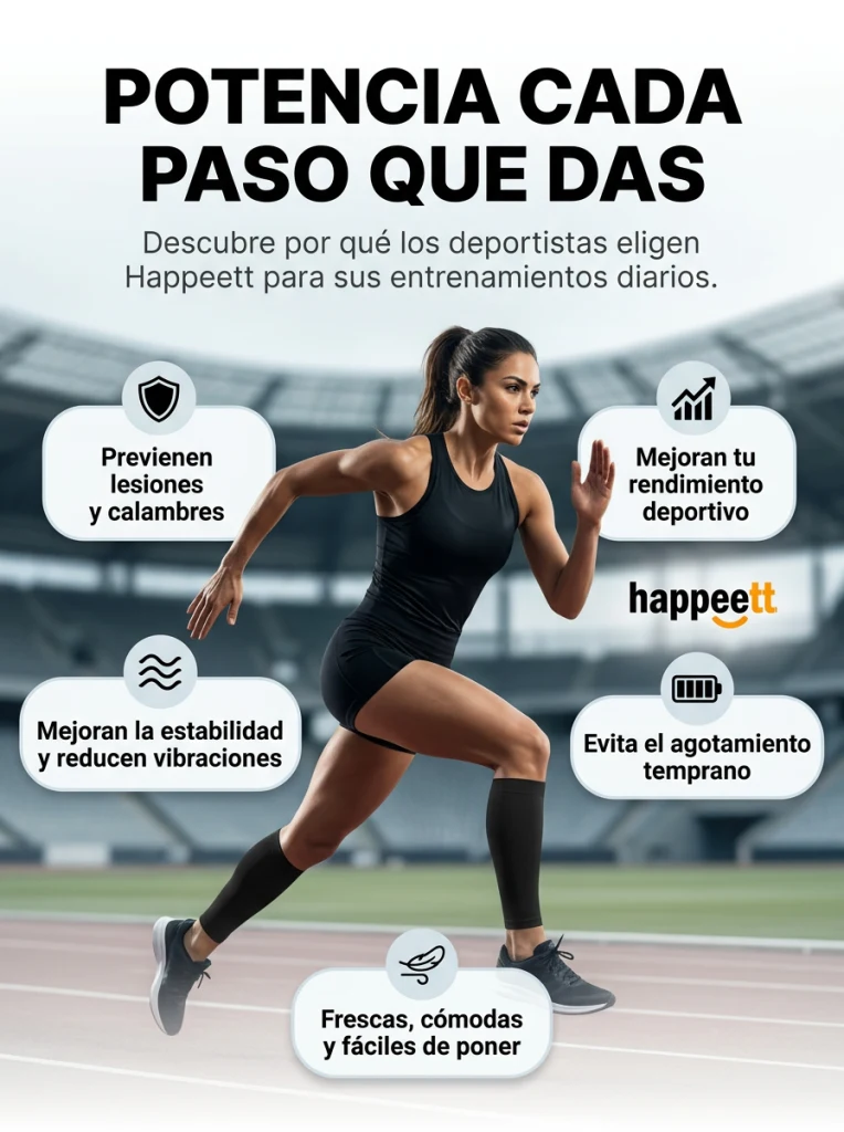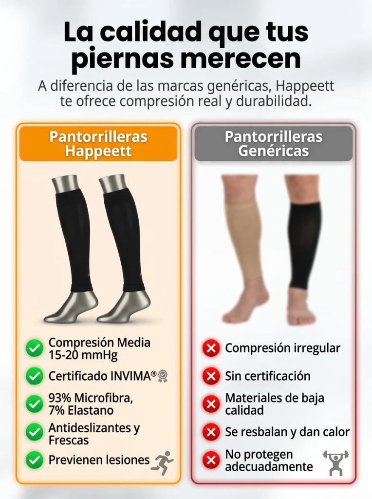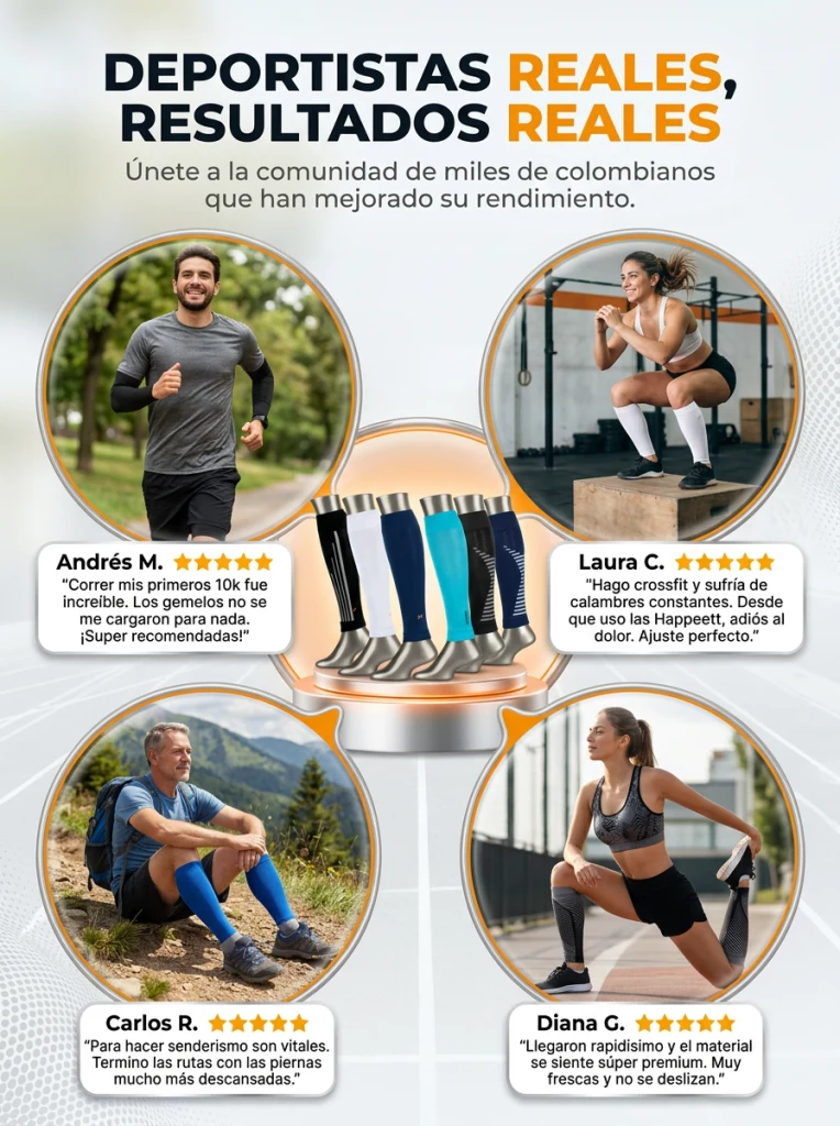 Pantorrilleras de compresión 15-20 mmHg Happeett. Rendimiento extremo, recuperación inmediata. ¡Aprobadas por el INVIMA!